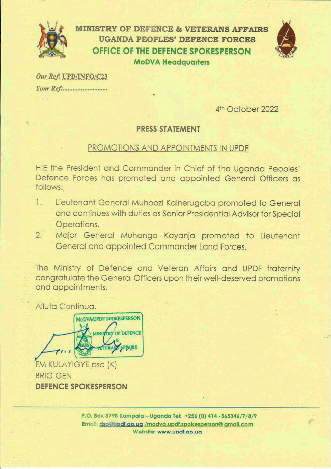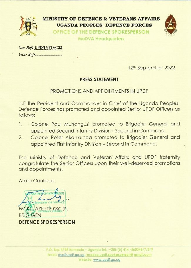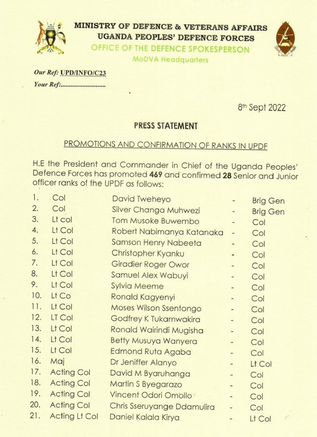 The Ministry of Defence and Veteran Affairs has noted with concern the increasing number of Civilians in military insignia that are a preserve of the security forces. Such as berets, lanyards and clothing. Section 160 of the Uganda Peoples’ Defence Forces Act, 2005 subsection 2. part (c) prohibits none members of the Security Forces…