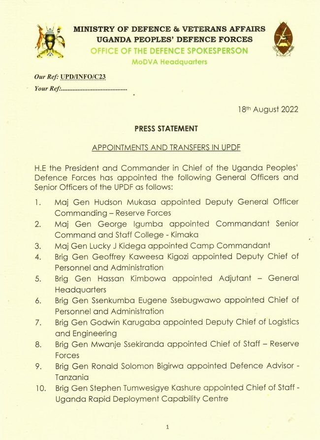 Following the safe return of the body of the Late Gen Elly Tumwine from Nairobi on Friday 26th August 2022, the Ministry of Defence and UPDF, together with the family of the deceased have harmonised the funeral programme as indicated here below: Sunday 28th August 2022 – Official Vigil at the Residence of the…