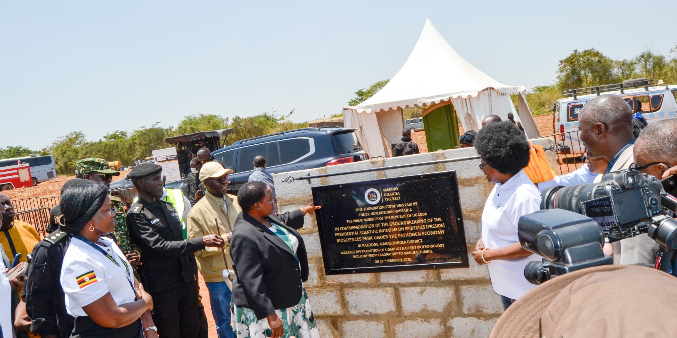 Prime Minister Rt. Hon. Robinah Nabbanja yesterday launched the construction of the 150-acre Pathogen Economy Bioscience Park at the NEC T6 Industrial and Business Park in Katuugo, Nakasongola District.