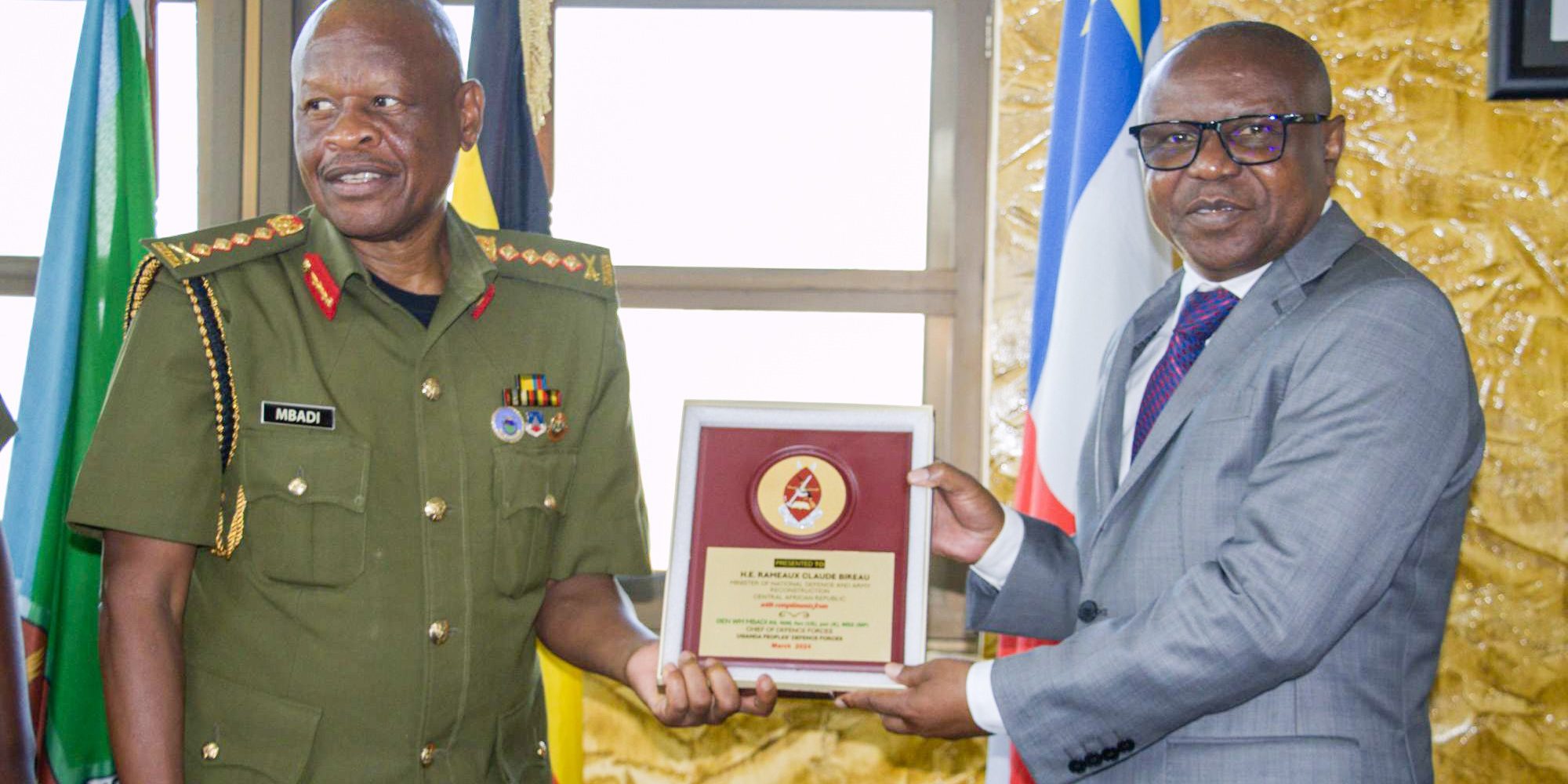 Gen Mbadu made the remarks during a meeting with the Minister of National Defence and Army Reconstruction of the Central African Republic, His Excellency Claude Rameaux Bireau, held at the Ministry of Defence and Veteran Affairs Headquarters, Mbuya, and expressed willingness to share UPDF’s experience to the Central African Armed Forces (FACA), especially through training and as requested by the leadership of the Central African Republic. “We equally went through that stage of crisis but with the leadership of our President, he focused on building a force so that it can provide peace and security in the country,” said Gen Mbadi as he underscored the development of Uganda as a result of peace and security.