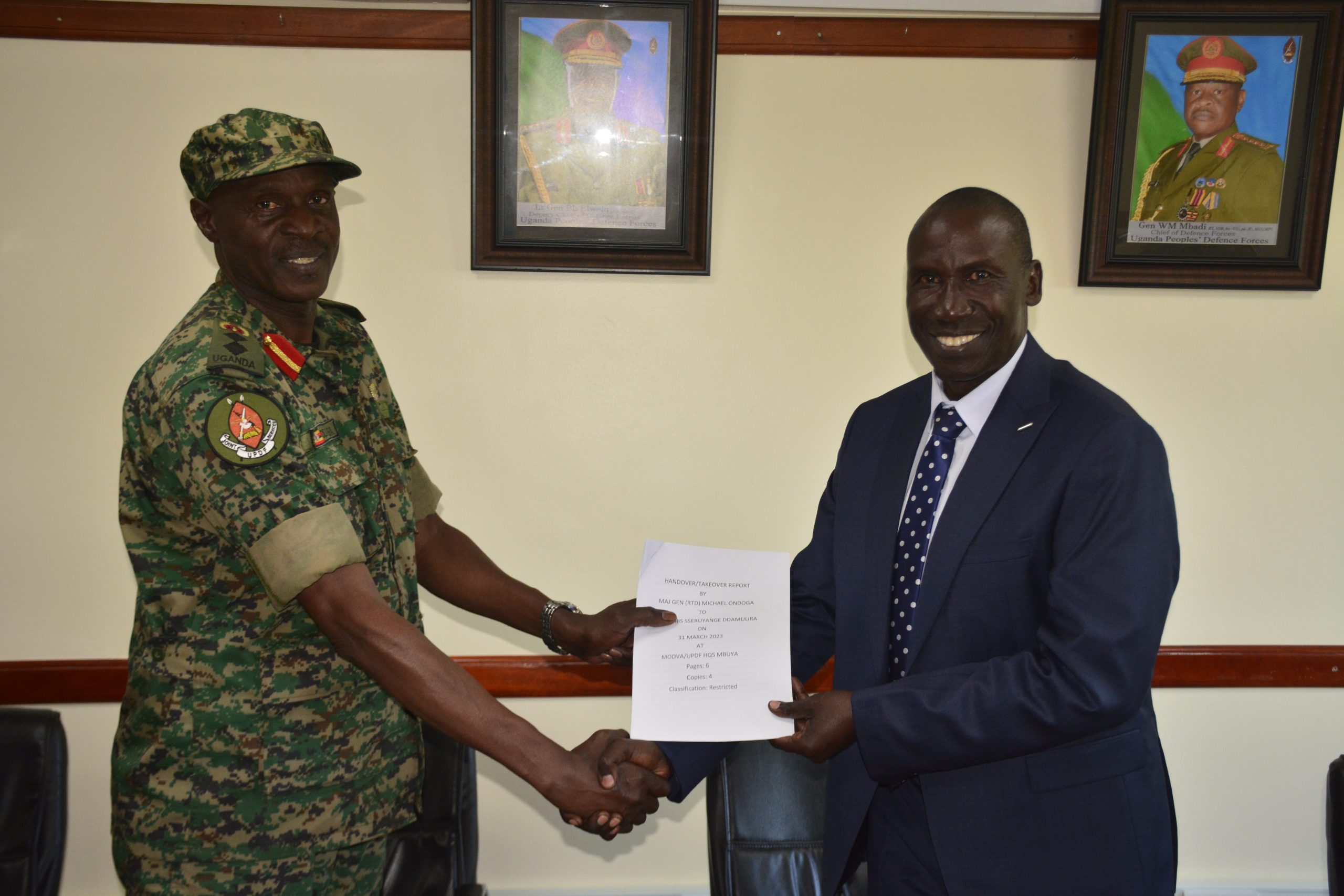 The UPDF Joint Chief of Staff Maj Gen Leopold Eric Kyanda while presiding over the handover/takeover function thanked Maj Gen Ondoga for the well-served time on duty. He assured Maj Gen Ondoga that, despite his going into retirement, he remains a key resource of the UPDF and can be called upon for any assignment.