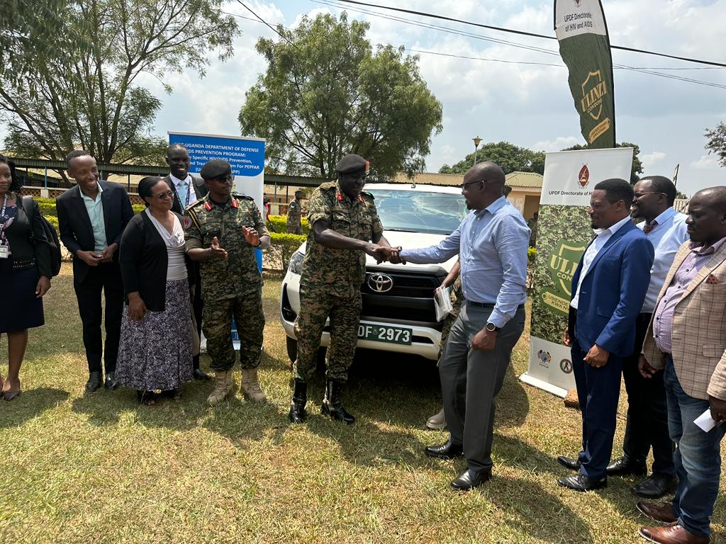 The Chieftaincy of Medical Services of the Uganda Peoples’ Defence Forces has today received donations of a brand-New Toyota Hilux Double Cabin from PEPFAR Uganda and three Yamaha Motorcycles from the University Research Co., LLC (URC) that were received by Brigadier General Patrick Ocen who represented the Chief of Medical Services, Major General Ambrose Musinguzi.