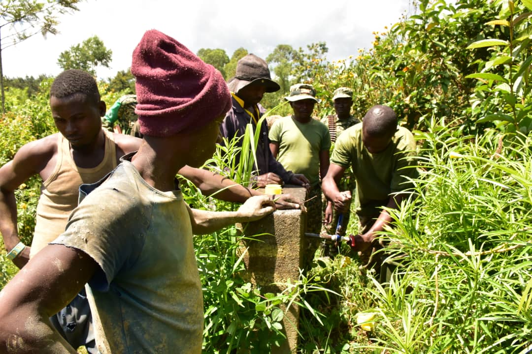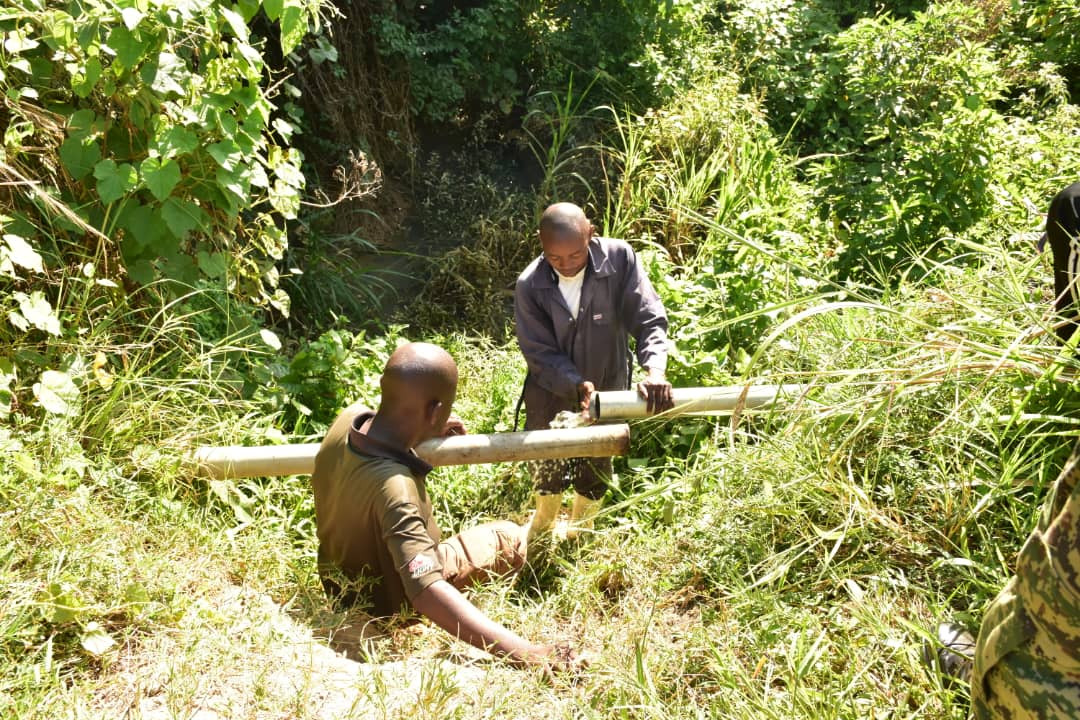 The Deputy Head of Uganda Continent Engineering Component Captain Elias Arinaitwe during the engineering works said that the main pipe was cut off and some parts were damaged. Water had stopped flowing from the source to the main reserve tank for distribution to the community. “The job was tedious but we had to dig out and trace for the breaking point and fixed a new pipe to join the broken piece to ensure that water flows from the chamber to be distributed to the reserve tank. Water is now flowing and the community can now safely use clean water than before,” Captain Elias said. He added that the team also fixed new taps to avoid congestion at collection points.