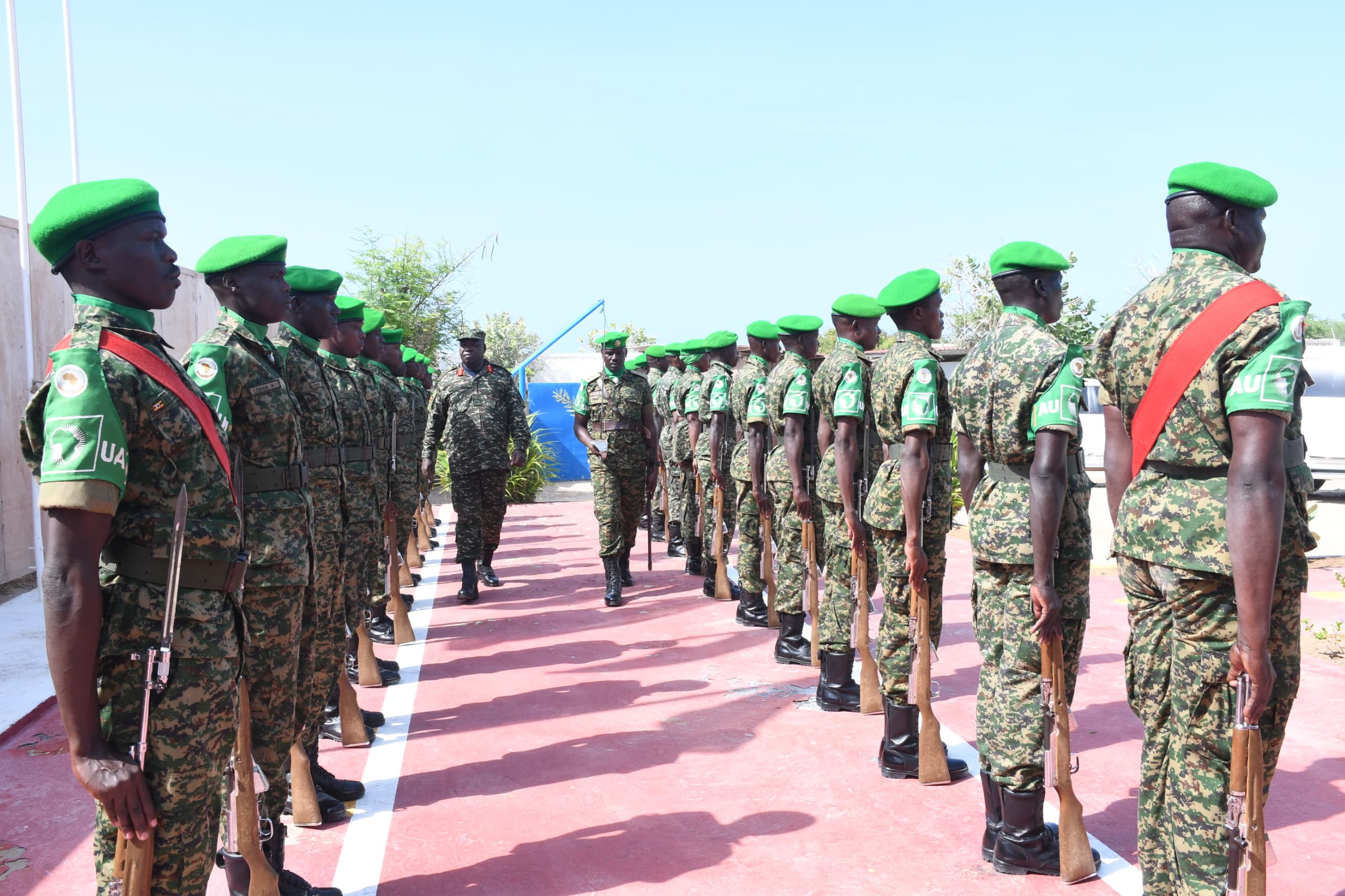 Also in attendance were Deputy Sector One Commander Colonel Christopher Columbus Tumwine, Battle Group XLIII Commander Colonel Robert Koch, Battle Group XLIV Commander Colonel Awiny Akena, Contingent Administration Officer Colonel John Mark Ssemanda, along with other staff officers and soldiers.