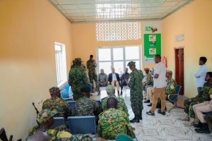 The minister was accompanied by Barawe District Commissioner Umaru Abdulahi Mahammad, 06 Brigade Commander Col. Abdurahuman Elmi, the Barawe District Police Commander, and senior and junior officers from both the UPDF and the Somali National Army.