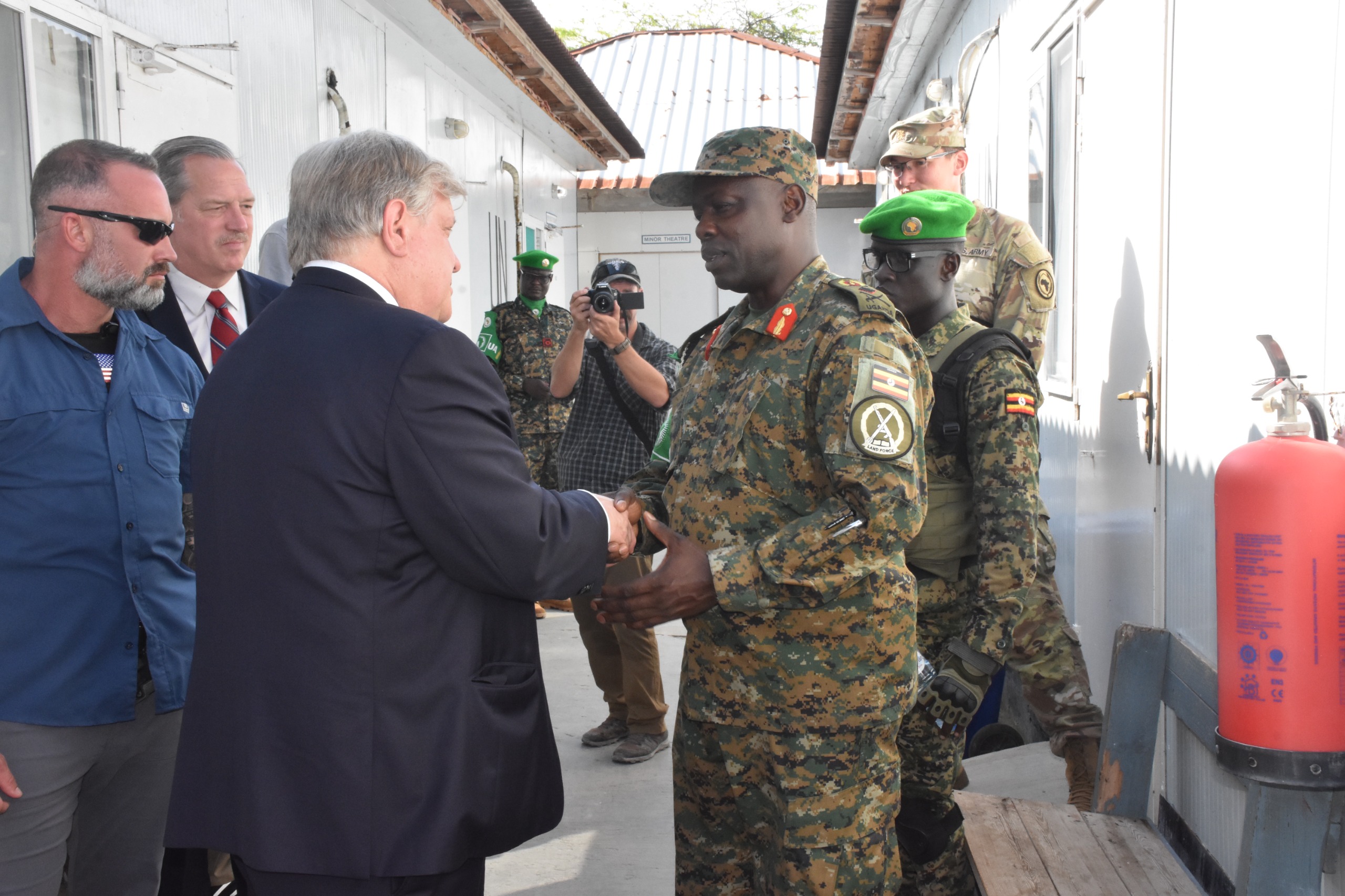 The United States Ambassador to Somalia, H.E. Richard Riley, has hailed the Uganda Peoples’ Defence Forces (UPDF) troops serving under the African Union Support and Stabilisation Mission in Somalia (AUSSOM) for their bravery, professionalism, and sacrifice in the fight against terrorism.