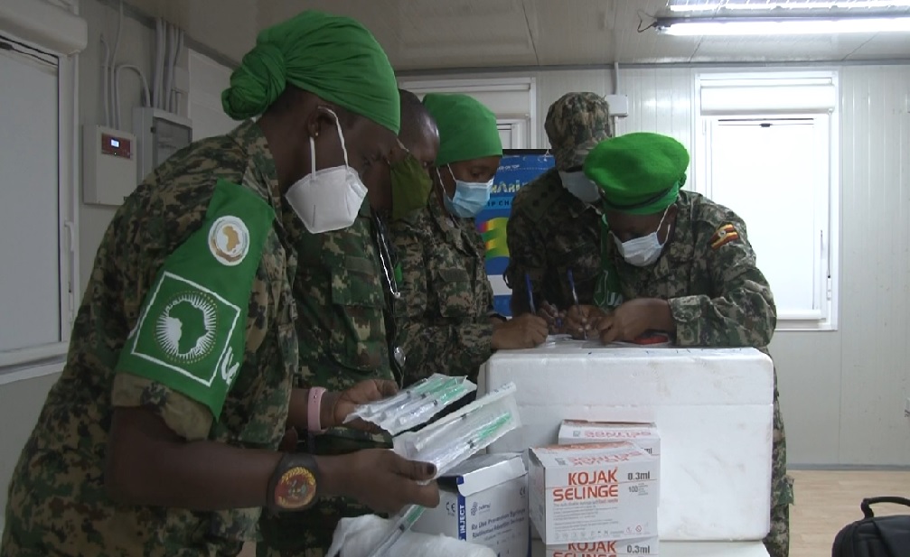 Ugandan troops serving under AMISOM in Somalia received their COVID 19 booster dose in Mogadishu on Saturday, 22nd Jan 2022.