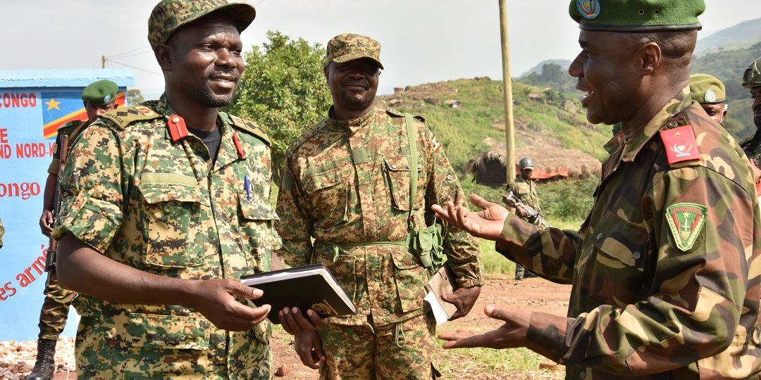 - Brig Gen Kasango Maloba Roberts (right) FARDC Commander Beni Sector interacts with UPDF Col Dennis Wandera Wanyama (left) the Commanding Sector 3
