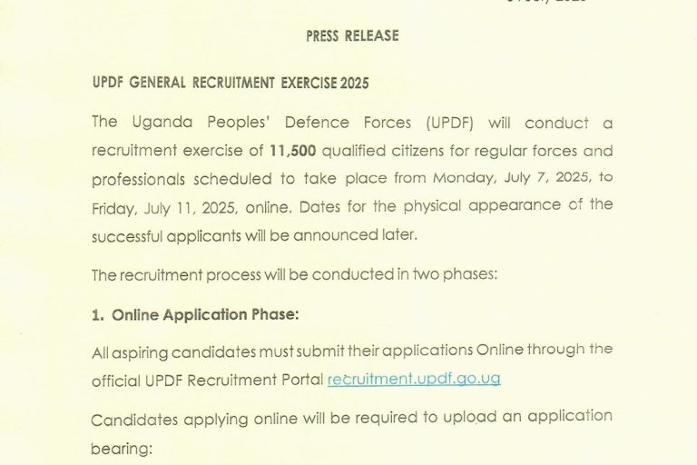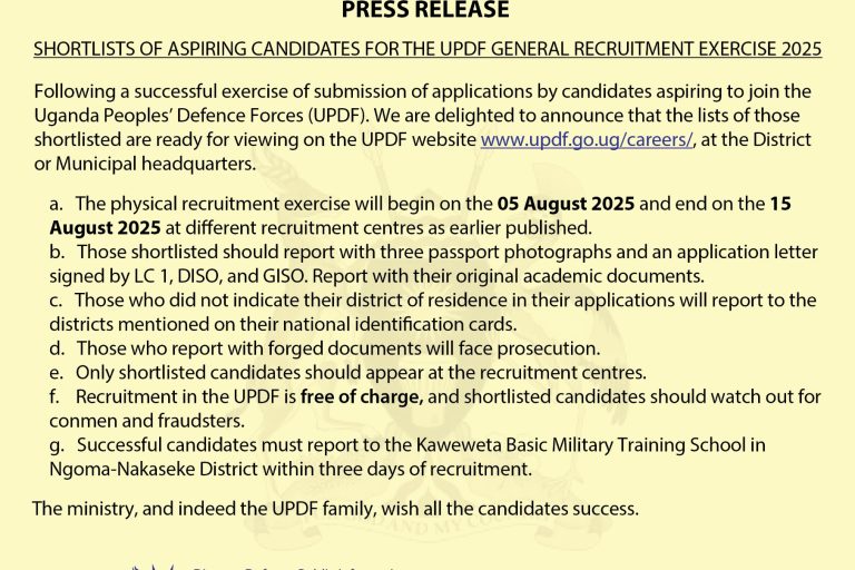 Jul312025 Press Release Shortlists Of Aspiring Candidants For The UPDF General Recruitment Exercise 2025 Read more