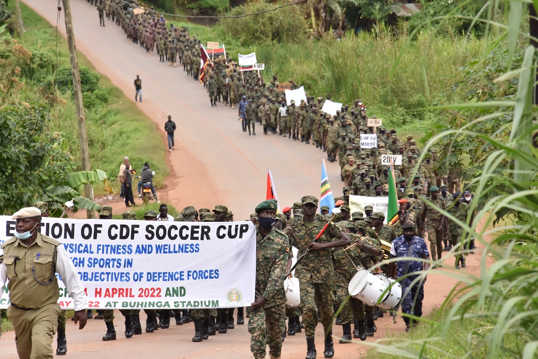 The soccer tournament comprising of 19 football teams drawn from Divisions, Brigades and independent units, and six netball teams, started with a route match along the streets of Fort Portal city led by the second in command Mountain Division; Col John Winston Mugarura.