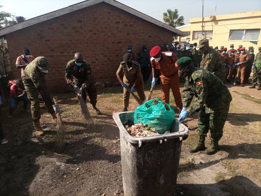 The security forces joined hands and worked together in cleaning Gulu Regional Referral Hospital.