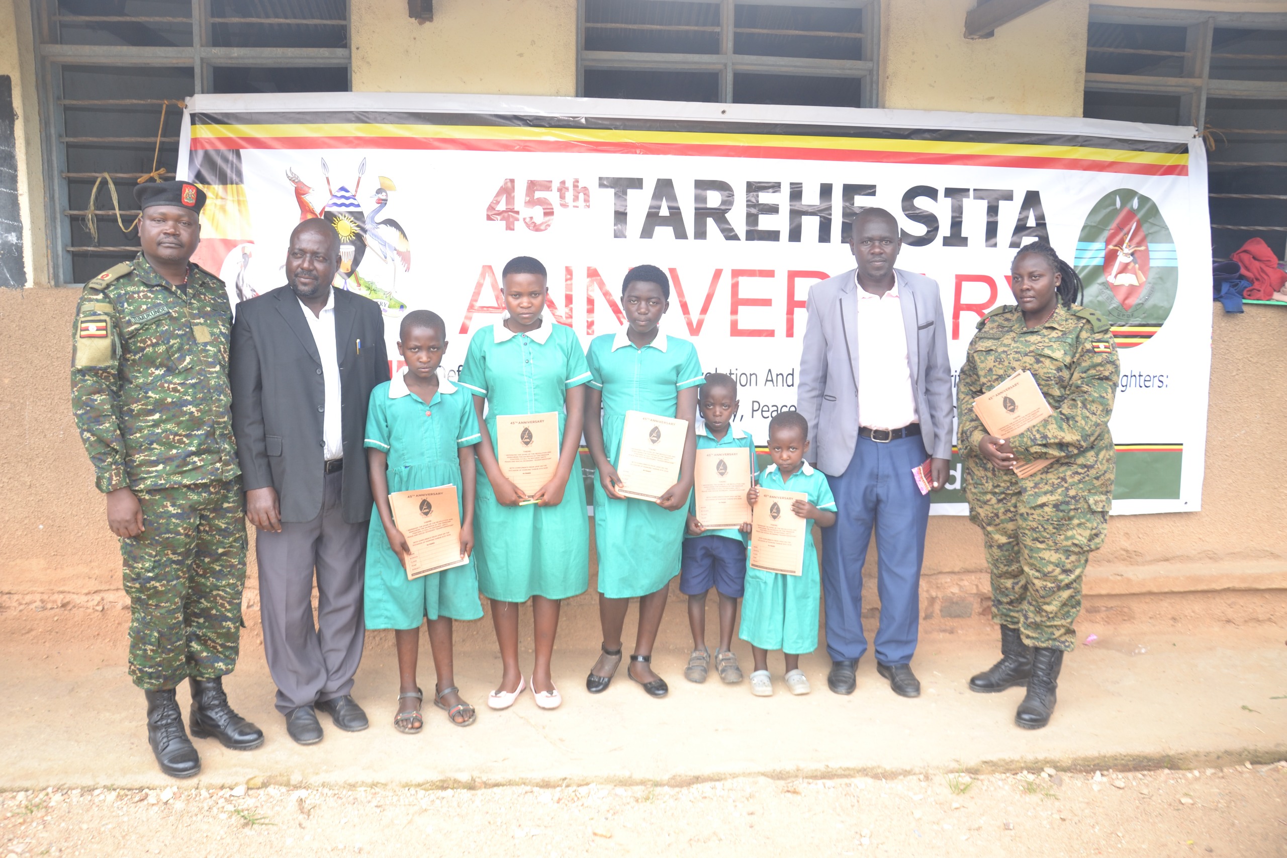 Tukamusiima Clare, the head prefect, expressed gratitude on behalf of the pupils’ fraternity, saying, “We thank the government for putting UPE in place and the UPDF for including us in their programme and providing us with scholastic materials,” he said.