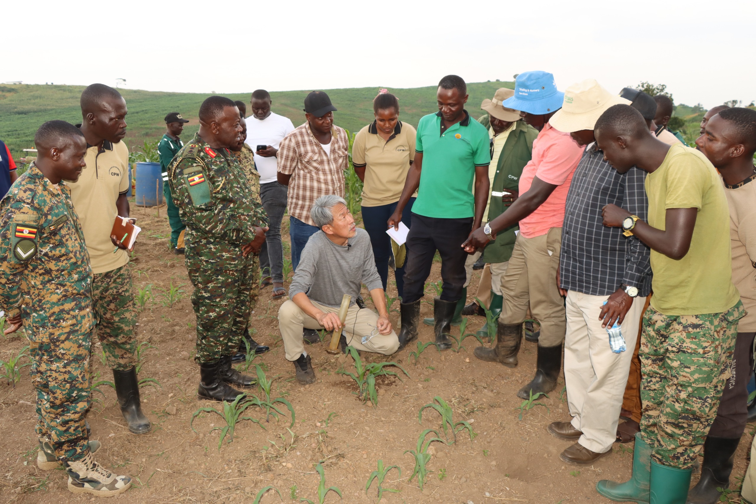 The Uganda Peoples’ Defence Forces (UPDF) Department of Production hosted Dr Jo Min Kim, a professor from the University of Tokyo, at the Kabamba Army Farm, where he carried out a field demonstration on advanced agricultural technology intended to improve crop resilience and increase yields.