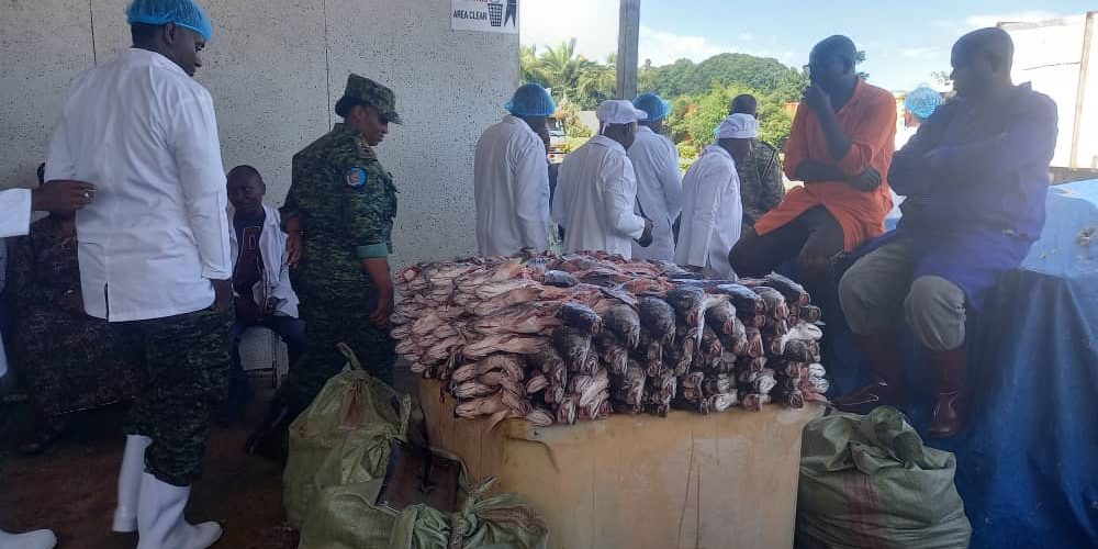 This was observed by the Commander of FPU Lt Col Mercy Tukahirwa as she embarked on a three-day (17-19 April 2024) guided and sensitisation tour of fish processing factories in Jinja and Kampala districts. “Our engagement with fishing communities has definitely led to fish stock increase hence the mushrooming fish processing factories,” remarked Lt Col Tukahirwa as she toured Nyanza Perch factory, Lake Eco Fish Processing Limited and Yalelo Private Cage Fish Company in Jinja.