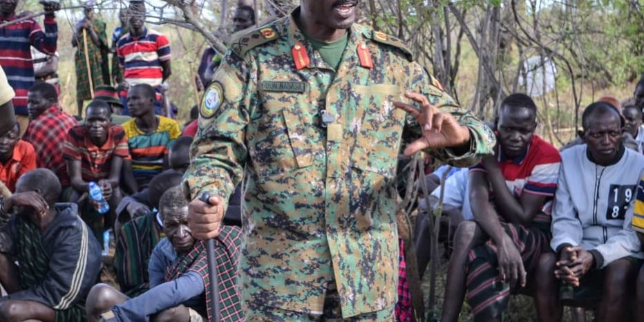 Maj Gen Nabasa made remarks yesterday (Saturday, 6 April) during an inter-district security community meeting held at Moruitit village, Sidok Sub-County in Kaabong district. “I implore the two communities to form a peaceful alliance to foster brotherhood, reduce counter-accusations and curb cattle theft in your locations,” Maj Gen Nabasa said.