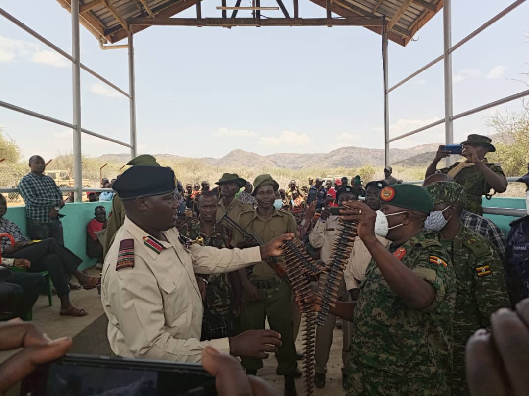 The two guns were initially seized by the armed Turkana and Matheniko criminal elements during an attack where three Ugandan Geologists and two UPDF soldiers were shot dead in Kubebe area, Lotisan Sub-County in Moroto District on 21 March 2022.